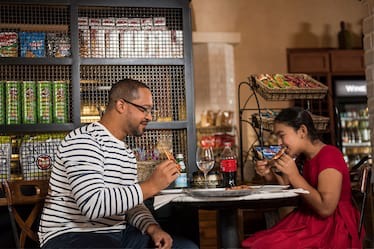 Dine on Italian staples like homemade pizzas, sandwiches, salads, meats, cheeses and fresh fruit.