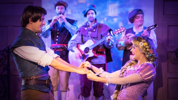 Throughout dinner, be treated to loads of lively entertainment—from singing and dancing with a merry band of musicians to appearances by Flynn Rider, the mischievous Snuggly Duckling Thugs and Princess Rapunzel herself. You can even partake in the festivities, which includes a spirited parade to cap off the night.