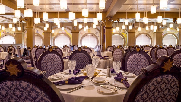 Rapunzel’s Royal Table is a Main Dining restaurant within the innovative Rotational Dining experience aboard all Disney ships. Each night of your cruise, you and your personal wait staff will "rotate" to one of the 3 distinctly themed restaurants on the ship, ensuring you enjoy a delicious meal catered to your liking in a unique setting nightly.