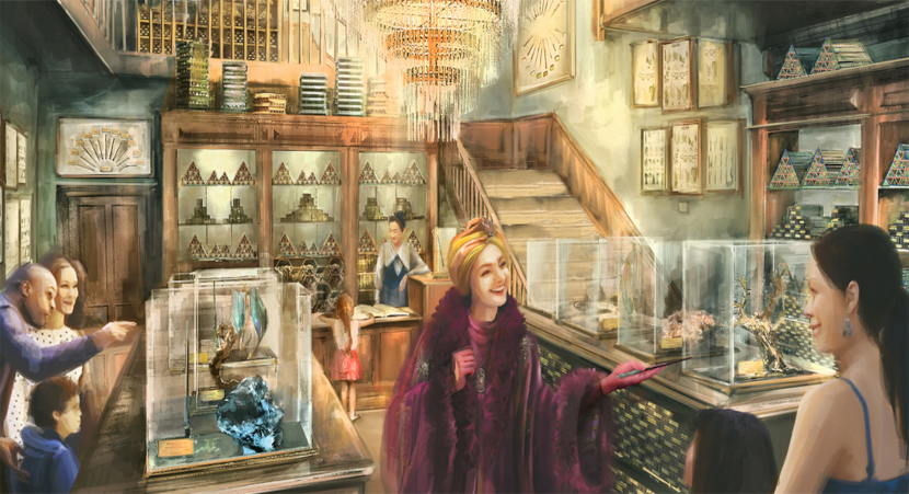 Your clients can stroll the magical shops along Place Cachée for a fine selection of wands, apparel, gifts and more.