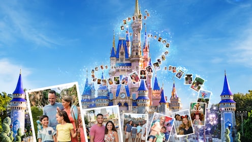 Add your Disney PhotoPass photo to an augmented reality mural superimposed on Cinderella Castle.
