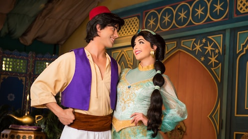 Find Princess Jasmine exploring the Agrabah Bazaar with that diamond in the rough, Aladdin.
