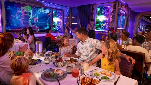 Join an out-of-this-world celebration and dining experience, hosted by Disney Cruise Line and starring the lively duo of Rocket and Groot—famous for their roles in the blockbuster Guardians of the Galaxy films from Marvel Studios.